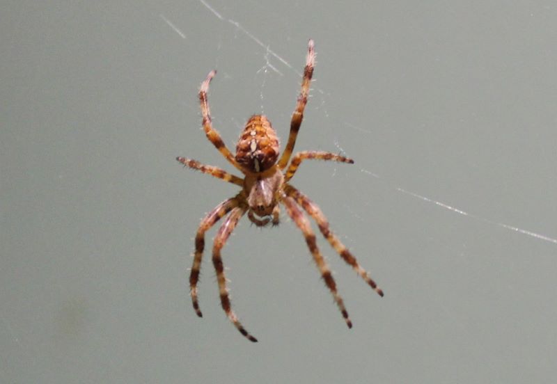 One of the biggest families is Arenidae, the orb web spiders, distinctive for the large webs they build. It was one of these, a Cross orbweaver (Araneus diadematus), who set up home in our kitchen last year and became a welcome and entertaining lodger.